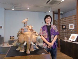 五月みどりさんと、右は今ギャラリーセピカで陶展している山本淳平さん