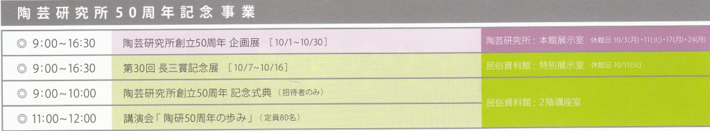 交流会、陶芸研究所創立50周年企画展、第30回長三賞記念展など