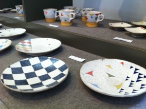 陶磁器や布製品や紙製品のたくさんのマーケットブースなど
