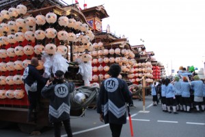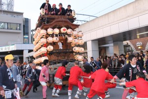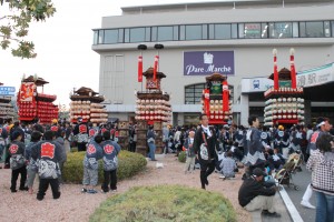 今日は、15日の日曜日に常滑駅にすべての山車が集まっているところです!